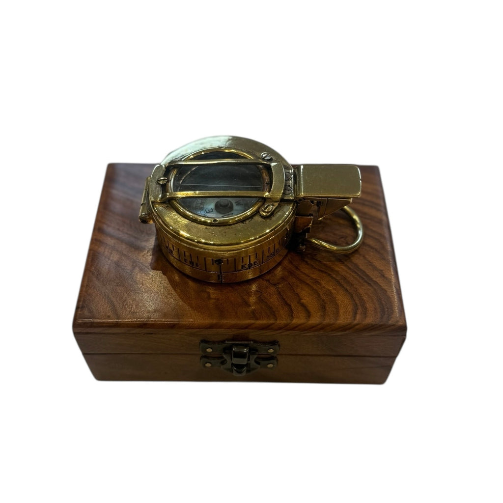 Original Antique 2nd World War Brass Army Officer’s 1940 T. G Co. London Prismatic Compass in a Wooden Box or Original Cloth Pouch