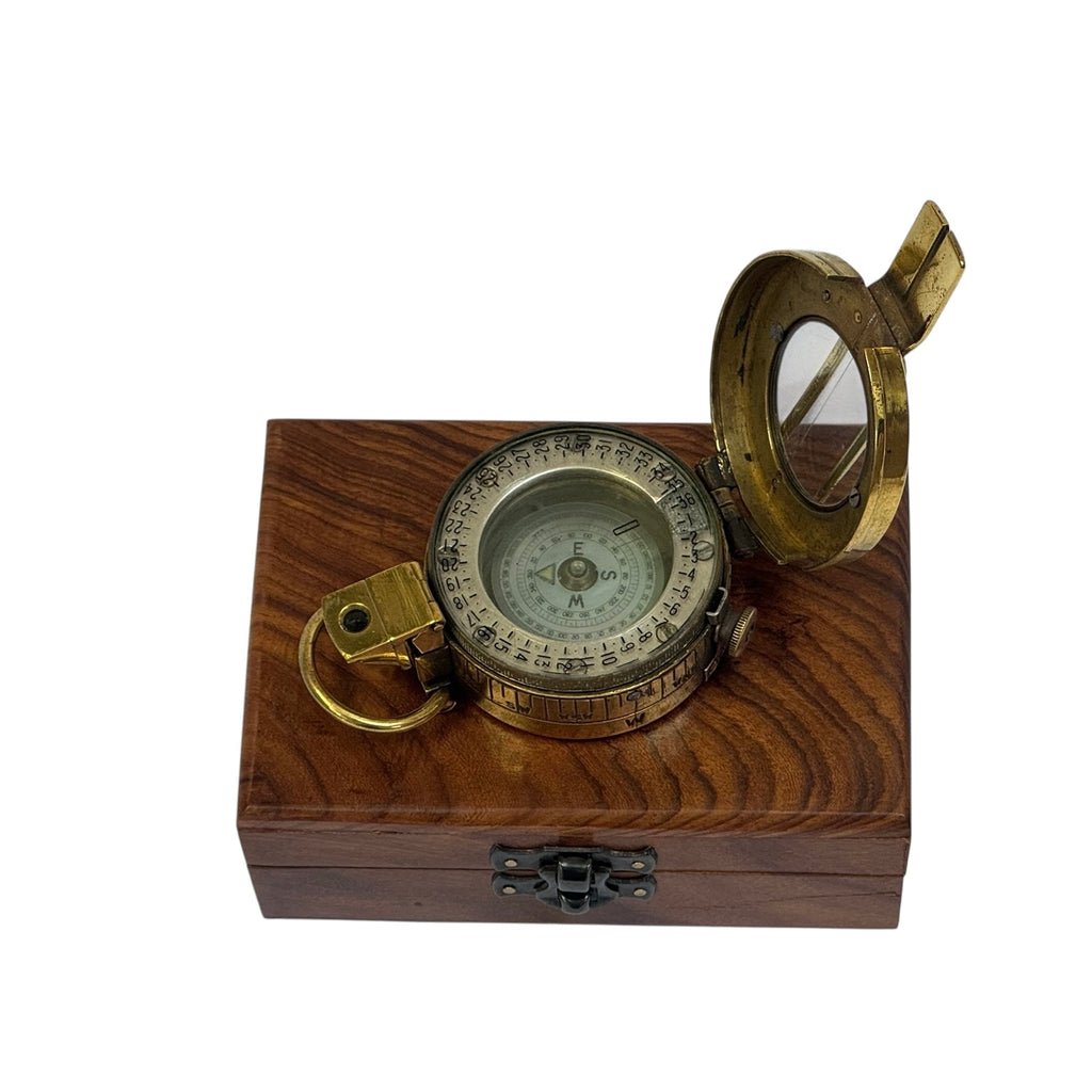 Original Antique 2nd World War Brass Army Officer’s 1941 T. G Co. London Prismatic Compass in a Wooden Box or Original Cloth Pouch